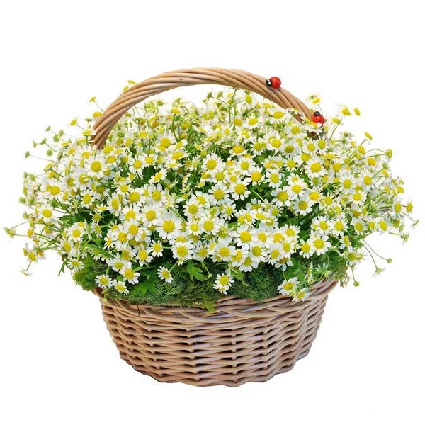 Стандартный: матрикария (мелкая ромашка) - 35 шт., корзина большая, оазис.